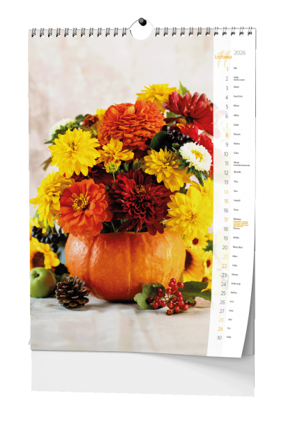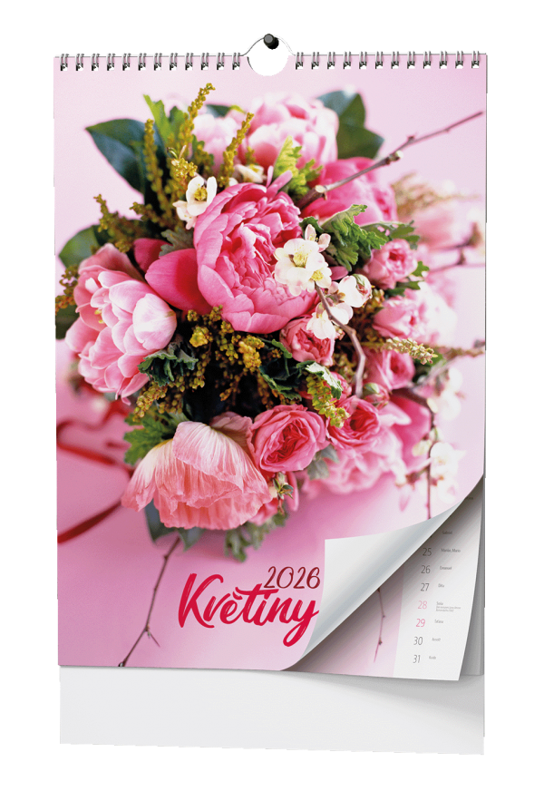 Nástěnný kalendář s obrázky barevných kytic a květů. Kalendář je tištěný na kvalitní křídový papír 135 g/m2, obálka je povrchově upravena lakem proti otěru. Dvojitá kovová spirála "Twin Wire" po celé šířce kalendáře s háčkem pro zavěšení. Zadní karton je z kvalitní bílé lepenky 600 g/m2, přesah pro reklamní přítisk je 60 mm.