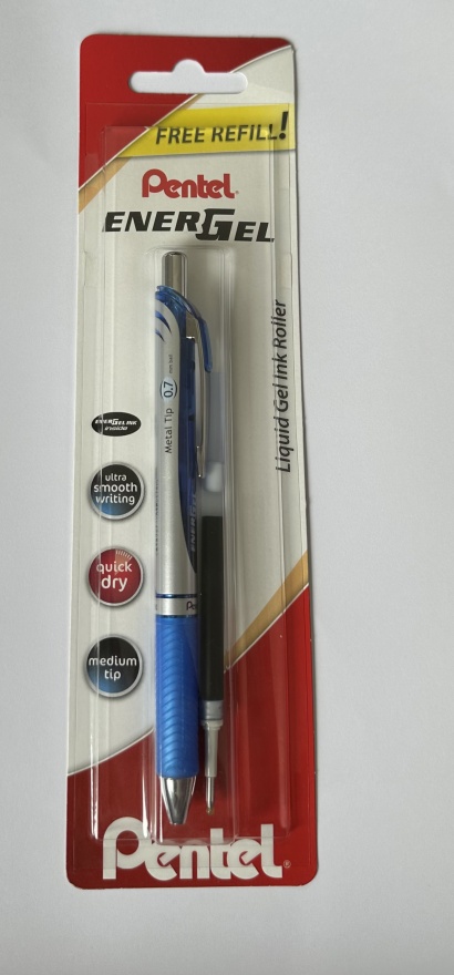 Gelové pero v modrém provedení s rychleschnoucí vyměnitelnou gelovou náplní EnerGel.