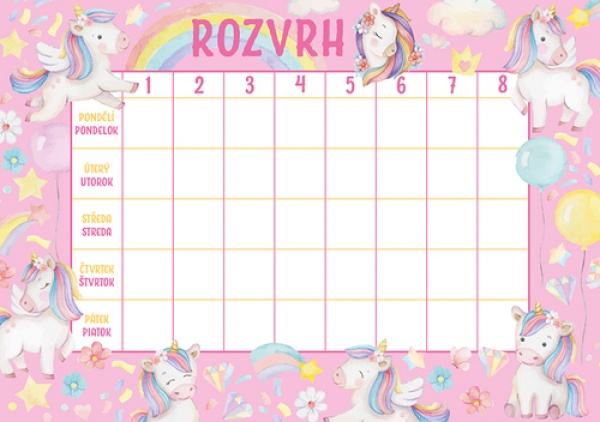 Rozvrh hodin, formát A5 210 x 148 mm.