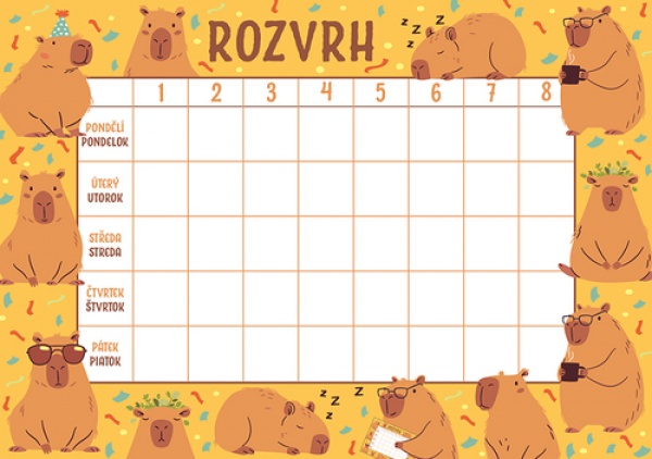Rozvrh hodin , formát A5 148 x 210 mm.